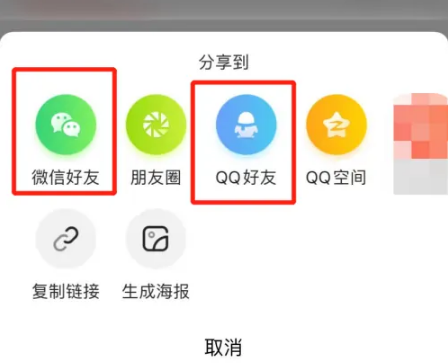 在下方弹出的选项中可以选择将该商品分享给【微信好友】或【QQ好友】等。