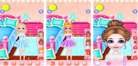 在魔法王国里居住着很多高颜值的公主角色,这些公主必须要从头到脚进行换装,才能将最亮眼的造型呈现在大家的眼前,包括发型,再到礼服等等,但是在为公主换装之前必须要做好皮肤的护理。所有的配饰以及发型类型全部在屏幕下方展现,大家利用手指就能够完成变换。