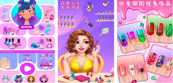 很多小公主都特别喜欢各种漂亮的美甲角色,大家可用天马行空的想象力创造出独一无二的美甲样子。其中的指甲油颜色应有尽有,比如有红色或者是粉色等等,按照自己的喜好为其中的公主完成涂抹指甲油的任务,就连指甲上的各种图案都可随心所欲设计,没有任何的约束性和拘束感。