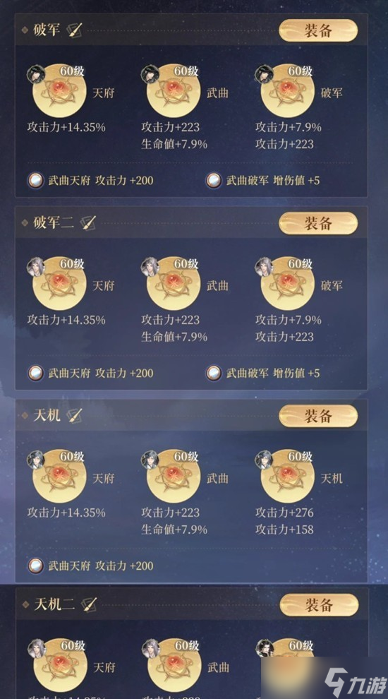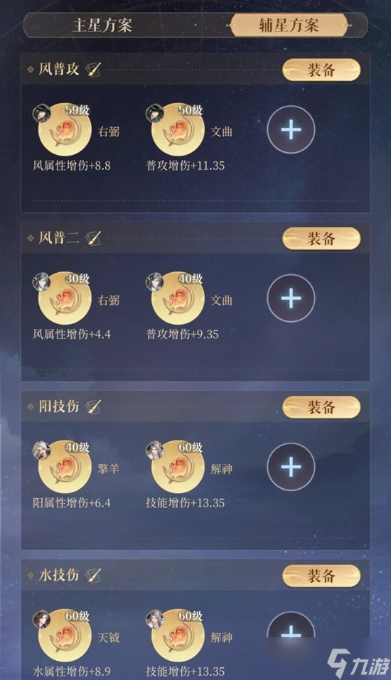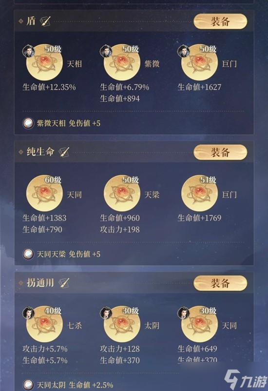 在有董奉上场,甄宓生命值高,反伤不容易被打满时,应该重视甄宓的增伤值,带“天机巨门贪狼”(注意冷知识:天机巨门+5增伤值)。