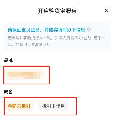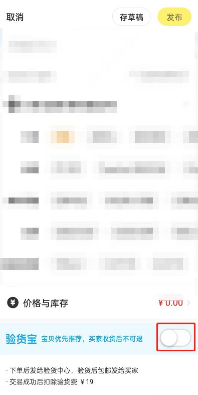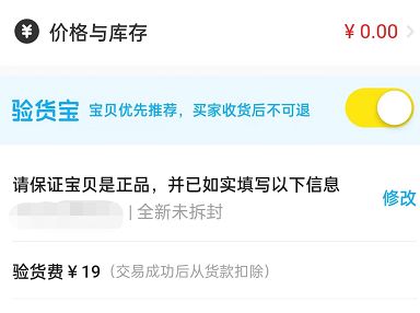 3、填写好商品信息,选择好商品标签后,滑动到*底部,打开验货宝右侧开关。