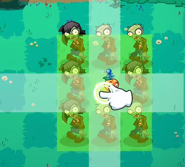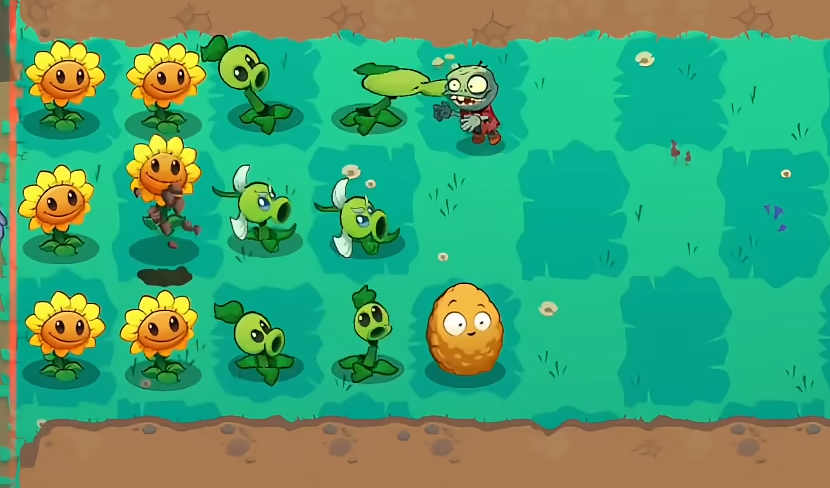 一开始我们需要在后面一排种植向日葵来收集阳光,之后除了最后一排以外都需要种上豌豆射手,其中尤其是第二行的敌人出现的是格外多,所以建议在前方的位置放置坚果,然后在第二行中间的位置来放置一个吹风草,这样咱们承受的压力会小上不少。等到压力缓解了再去最后一行种植一下豌豆射手。这一关敌人一多便要使用黄桃来将敌人眩晕来缓解压力。