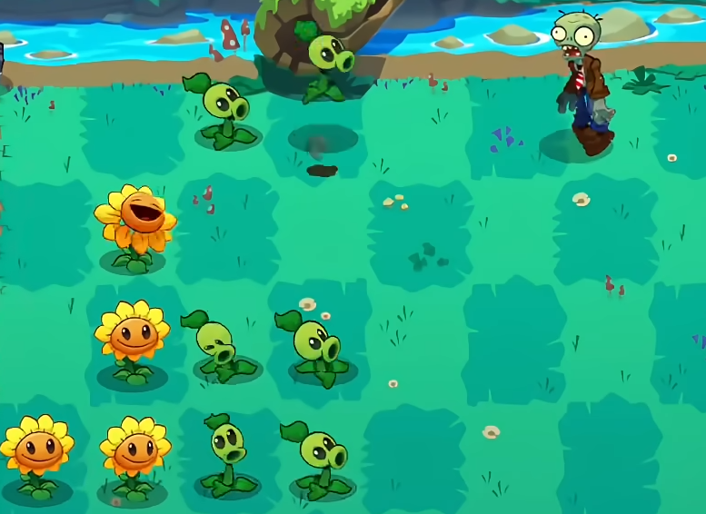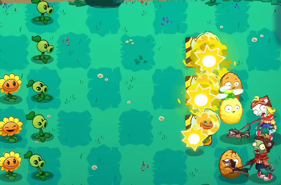 接下来的第三关就已经是全地图都解锁了。大家在一开始进入的时候首先还是老样子种植几株向日葵来收集阳光。这款开始会出现星星僵尸。它会偷走咱们一颗星星,我们如果想要获取到三星评价的话是肯定需要先将其给消灭的。这个僵尸本身的移动速度会随着关卡的推进而越来越快。同时自身的血量也会增加。在前期的时候它最大的问题就是血很厚。所以在出来之后需要迅速调集火力将其给消灭掉。