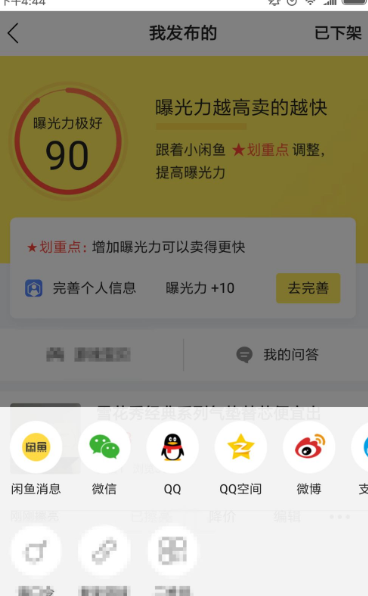 可以选择【分享】,将你的产品分享给在闲鱼之外的朋友们,这样也有可能被闲鱼之外的朋友们成功交易出去哦!
