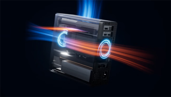 该工作站采用高效的散热系统,通过专用CPU/GPU气流通道与服务器级排气布局设计,配合六热管与双风扇,可稳定支持100W TDP负载及140W Turbo模式,运行噪音控制在36分贝,兼顾高性能与低噪表现,内置320W电源适配器。