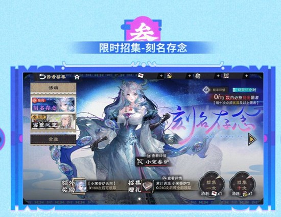 12月4日10:00至12月25日09:59,UP器者【小宋香炉(远击)】和【雪蓑风笠(轻锐)】将加入招募,玩家有机会获得这些强力角色。