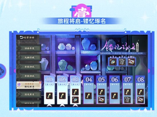 11月27日10:00至12月25日10:00,玩家可以通过登录游戏收集积分,兑换包括冬谷神秘水、超律制造申请、请调券和焕光珀片等在内的多种奖励。