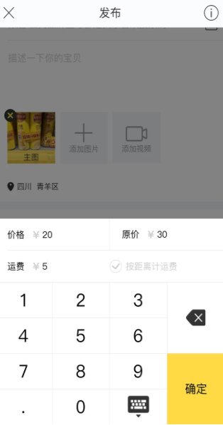 3,点击中件的+号,然从相册里选择自己要卖的物品照片