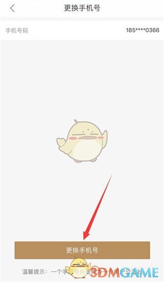 4、随后,跳转页面后,点击底部的“更换手机号”按钮;