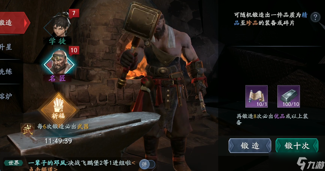 时间:2025-11-28 | 作者: | 阅读:0打造强力装备的关键在于掌握锻造系统的保底机制和资源分配。名匠锻造每十次必出紫色或以上品质装备,但通过祈福功能可以更精准控制武器产出。祈福武效果描述为每n次锻造必出武器,实际机制是连续n-1次未出武器后下一次必定获得。这里有个隐藏技巧——用学徒锻造垫刀,40元宝一次的学徒锻造能有效节省名匠次数。比如祈福到每4次必出武器,先用学徒锻造3次,若未出武器,第4次用名匠锻造必定获得武器,同时还能叠加十连保底紫装的特性。