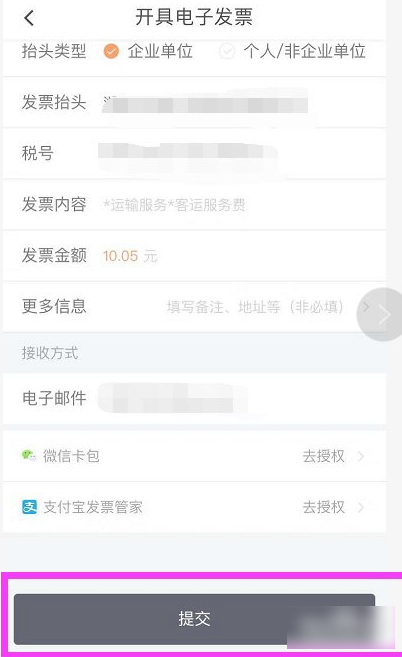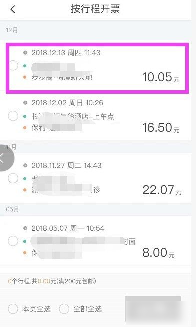 在个人中心中点击“钱包”,进入钱包页面,选择“票据”,进入开票页面,或者直接在订单中的个人历史行程记录的右上角点击“开票”,进入到开票页面。开票页面中显示你的历史行程记录,包括你刚刚在订单行程记录中已删除的内容。这里不可以手动删除订单,但是如果需要不在此页面上显示,可以先将该订单选中,然后提交开票,那么这条记录就会在这个开票列表中移除。
