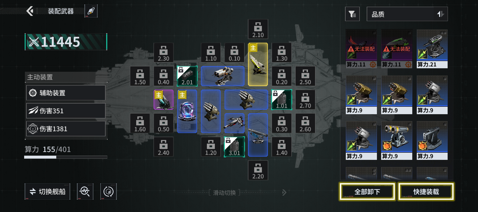 若获取到了新的武器模块,想高效完成装配,可先选择【全部卸下】,再启用【快捷装载】,系统会一键加载推荐的战斗配置。