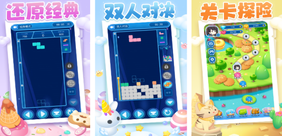 集合经典模式与竞速挑战于一体,支持双人对战功能,带来更具对抗性的游戏体验。初始界面中央为空白区域,右侧显示待使用的不同形状方块,玩家需将其拖至底部合理布局。虽然操作看似直观,但实际需要较强的策略思维与空间预判能力。随着消除行数增加,系统会根据表现发放相应数量的星星奖励,激励玩家不断突破自我。