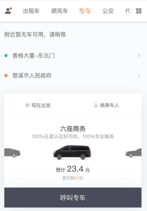 前面有和大家说过,如果你打算用专车,要指定车辆类型,用其他的模式,价格会比快车要高一些(打车的时候上面会有显示)