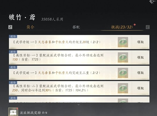 第二步:切换一个你从来没用过的同流派武学,不清楚的可以流派指引里面挑战有没有做,切换成这个武学。