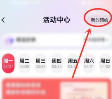 3、在活动中心,点击顶部“我的预约”图标。