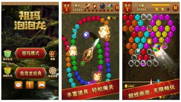 本作巧妙融合了祖玛系列的独特风格与传统泡泡龙的核心机制,打造出别具一格的消除体验。依旧采用发射同色泡泡进行配对消除的基础规则,但加入了反弹机制,让玩家可以利用墙壁反射来精准投放泡泡,提升策略性与操作趣味,为经典玩法注入全新活力。