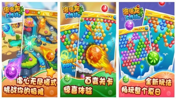 这款游戏不仅提供传统的闯关模式,还支持在线多人对战,让玩家能与其他用户实时PK,体验紧张刺激的泡泡对决。立体化的画面效果配合明亮活泼的色彩搭配,增强整体视觉吸引力。此外,游戏中配备多种功能道具,可用于改变泡泡颜色或清除大片区域,帮助玩家顺利突破难关。