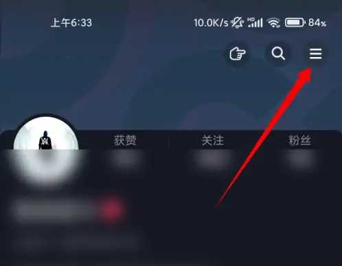 进入抖音我的页面,在右上角,点击三道杠菜单图标。