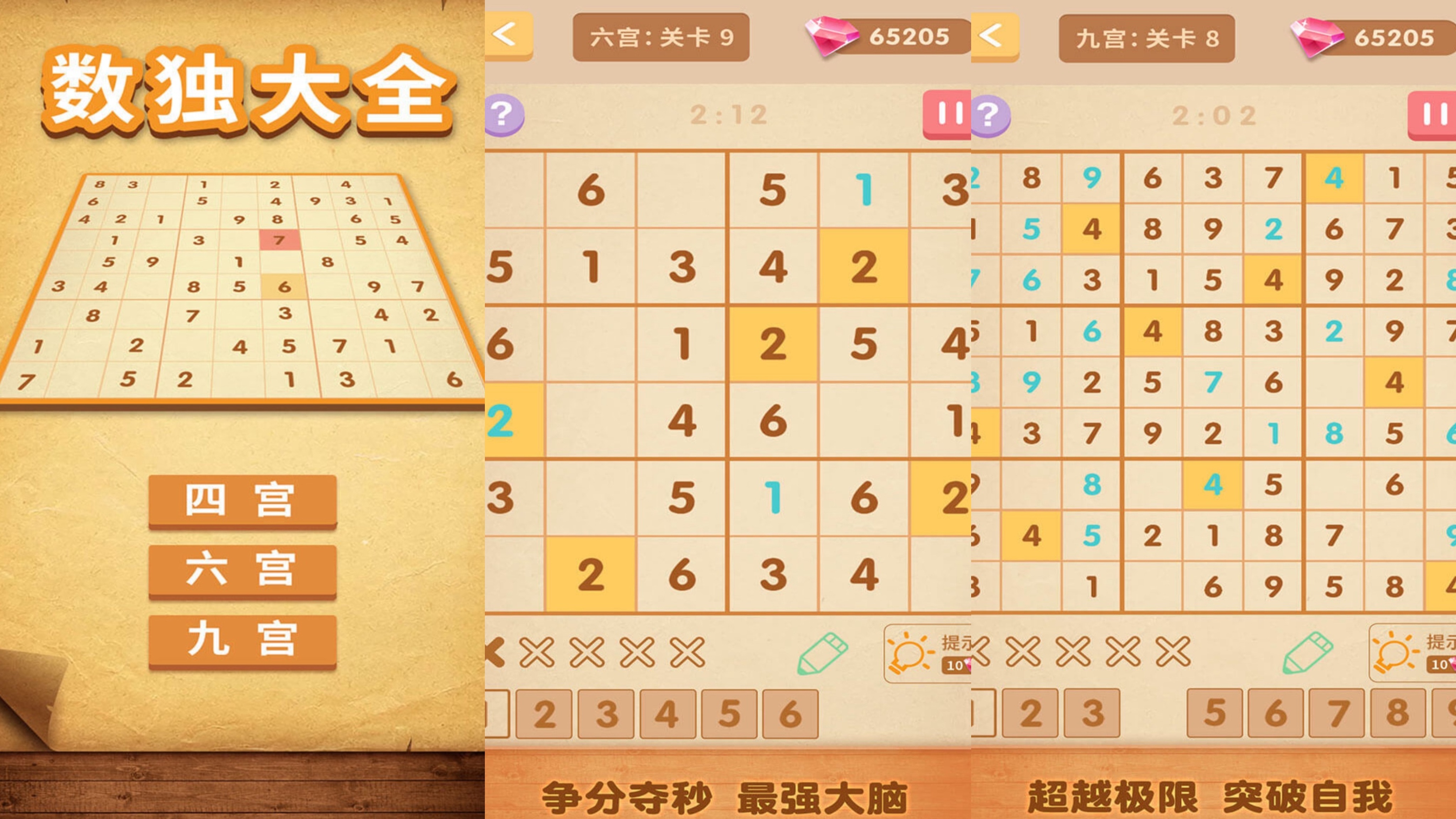《数独大全》是一款集多种数独形式于一体的综合性智力游戏。从基础的四宫格到经典的九宫格,难度梯度合理分布,适合各阶段玩家练习与提升。游戏配备数字标记功能,便于记录候选数值,辅助逻辑推导。此外,新增限时挑战模式,通过倒计时机制提升紧张感,强化反应与判断能力,让解题过程更具刺激性。