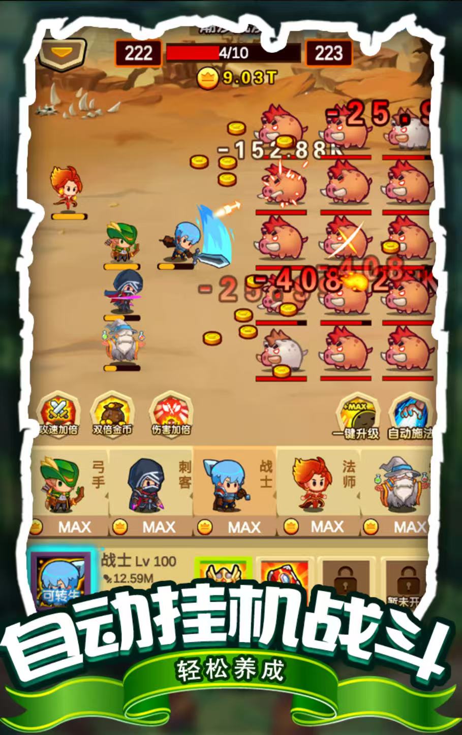 这是一款主打放置合成机制的休闲狩猎游戏,《狩猎怪物》让玩家在轻松的操作中享受成长乐趣。游戏核心玩法是通过合并相同等级的英雄卡牌,升级为更强力的角色,用于挑战更高难度的关卡。随着进度推进,可解锁更多地图场景和英雄类型。此外,游戏支持离线收益系统——闯过的关卡越多,挂机期间获得的资源也越丰富,帮助玩家不断提升角色属性,冲击更高层级的战斗目标。