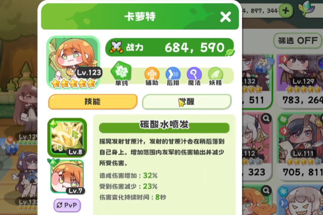 除了埃尔芬之外,达雅也是一个值得考虑的后排人选。他的战斗力与“星星”机制紧密相关,星星数量越多,技能威力越强。同时,达雅具备控制能力,可通过施加“痛苦”等负面状态限制敌方关键输出单位,起到打断节奏的作用。对于需要加强团队增益的玩家,后排还可配置卡萝特,该角色不仅能为全体队友提供增益效果,还具备减伤与回复能力,无论面对何种攻击目标都能保持较高存活率,功能性十分全面。