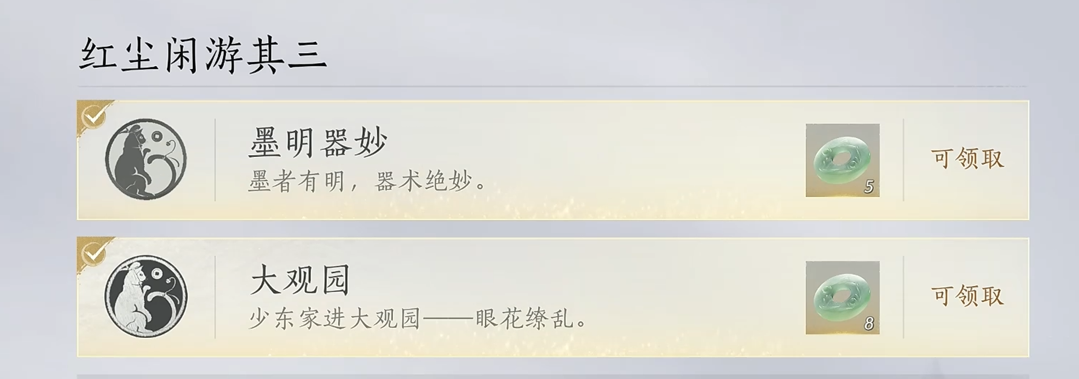 活动中有一个任务提示需要我们参观一件作品,参观了一件之后别急着提交任务,我们把摊位上的全部七件作品逛一遍,就能解锁隐藏成就【大观园】。