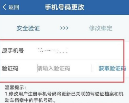 第四步进去手机号码更改界面之后,输入验证码进行验证