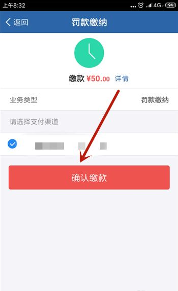 缴纳罚款需要选择相应的渠道,选择好后点击【确认缴款】