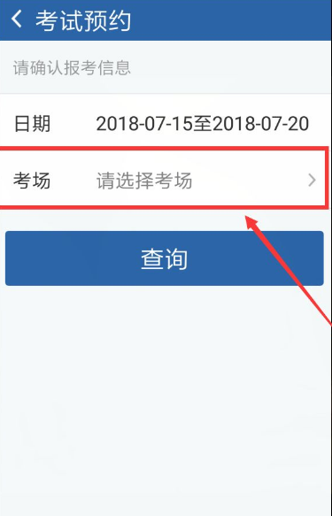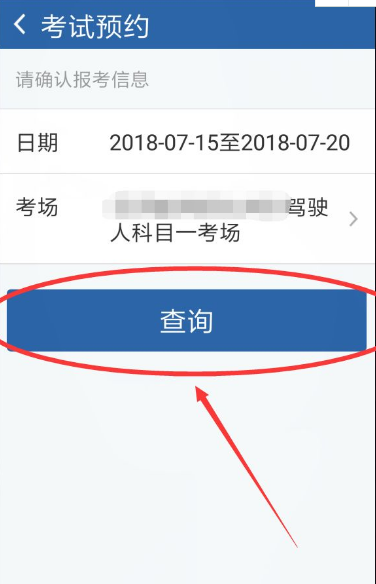我们选择好科目一的考场之后,我们找到“查询 ”按钮,点击打开进入考试日期预约页面 。