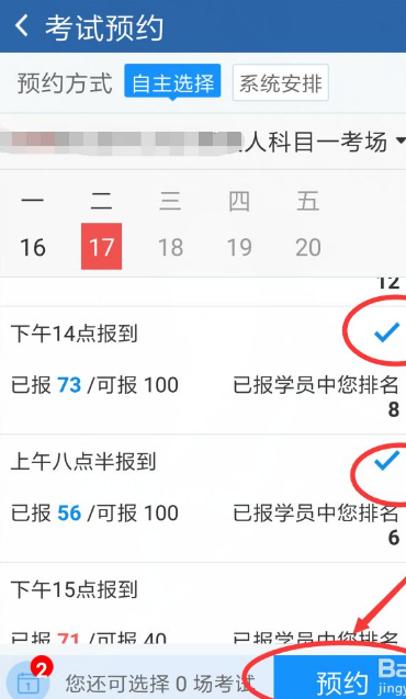 我们来到日期和场次的预约页面之后,我们选择一些人数比较少的预约场次,这样可以容易预约成功点,一般我们是选择两个场次的预约,这样我们预约成功的几率会大很多 。