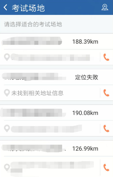 然后,我们就会来到考试预约的考场选择页面,我们点击中间的“考场选择栏”,我们就会自动来到自己附近的考场页面,我们选择一个离自己近的或者可以咨询下自己的教练 。