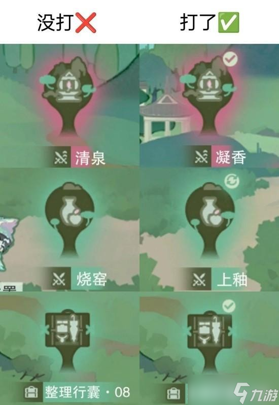 剧情+小游戏+红色战斗关打过了之后,右上角会有一个小对勾,材料关打过之后没有小对勾,但是会有一个循环的图标(没打之前都是没有这些小标标的);只有3个商店,不影响地图探索度,可以全部打完之后再来慢慢换,都是一些小资源,会每日刷新,有概率刷新出请调券