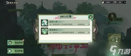 三、打完之后可以看左上角的地图探险度有没有达到100%来检查,最后退回首页的时候,记得到右上角青瓷莲影交换道具,全部交换完了给物铭(物铭在首页左上角查看)