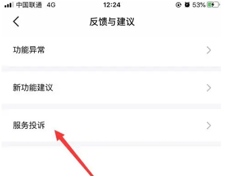 然后,我们点击底部的“服务投诉”功能