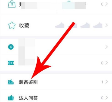 进入到毒app个人主页,点击下面的“装备鉴别”,位置见下图