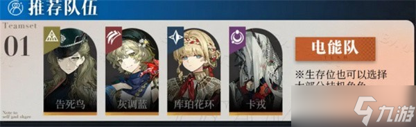 进队方式:在露西/告死鸟+乌尔里希+卡戎的配队中,灰调蓝偏辅助,预计代替组长位置,自身可作为电能单C输出