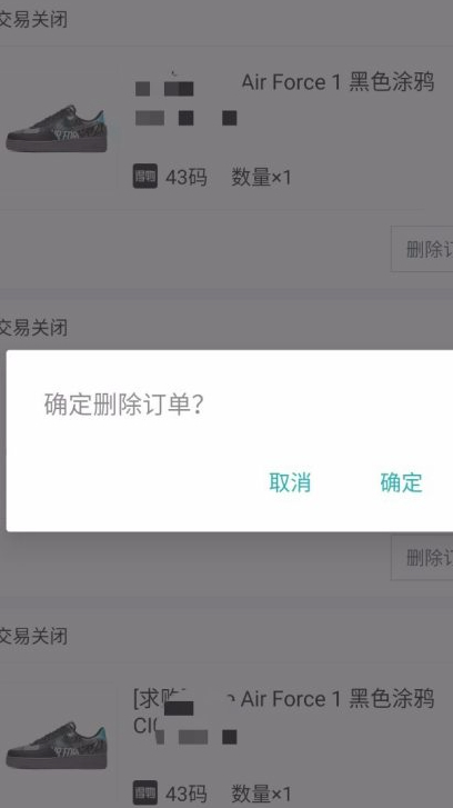 屏幕中间出现是否确定删除订单的提示框,点击确定即可。
