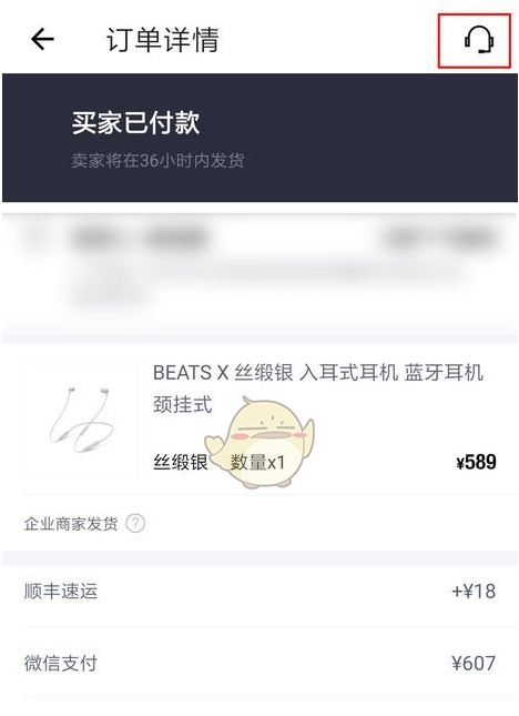 3、在“订单详情”中 - 点击右上角的“客服图标”。