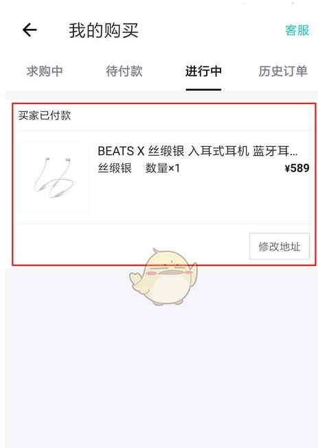 2、在“我的购买中”-“进行中”- 点击你要取消的订单。