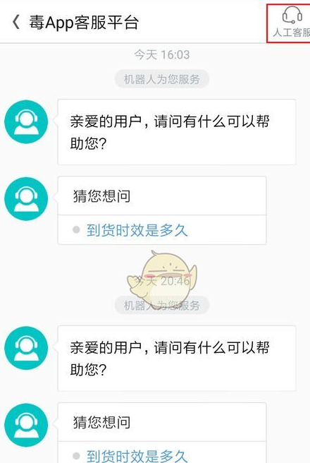 6、在毒APP客服平台中 - 右上角点击“人工客服” - 跟人工客服说明要取消哪个订单即可(毒APP取消订单是有相应规则的,在“如何取消订单”中的问题描述有写明规则)。
