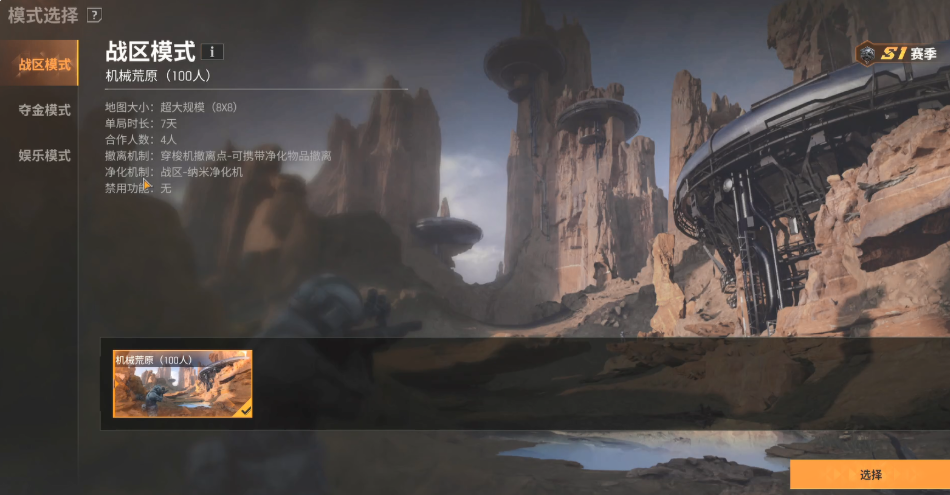 成为完成前期的新手教学,也就是抓捕、战斗建造等内容后,就能通过家门口的仪器开启摸金模式,摸金模式单局人数目前最多可容纳100人,游玩时间也有7天之久,当然如果喜欢快节奏,还有一种对局时间更短的“夺金”。