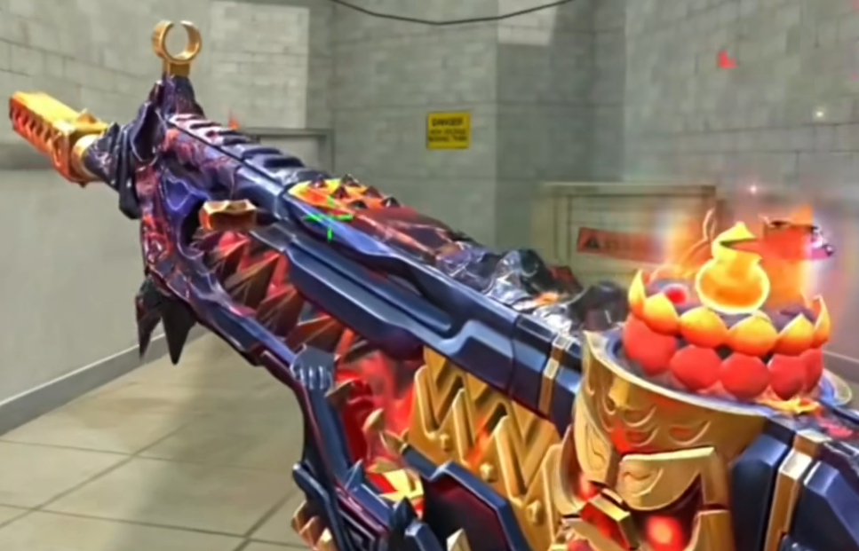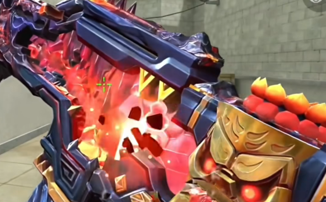 这款游戏的特效做的非常好,枪的后半部分有钢牙大王张开大嘴的特效,同时前面的宝石部分可以看到有一个小葫芦。枪的上方还有着在发光的金色的小葫芦。枪在换弹的时候也有特效。