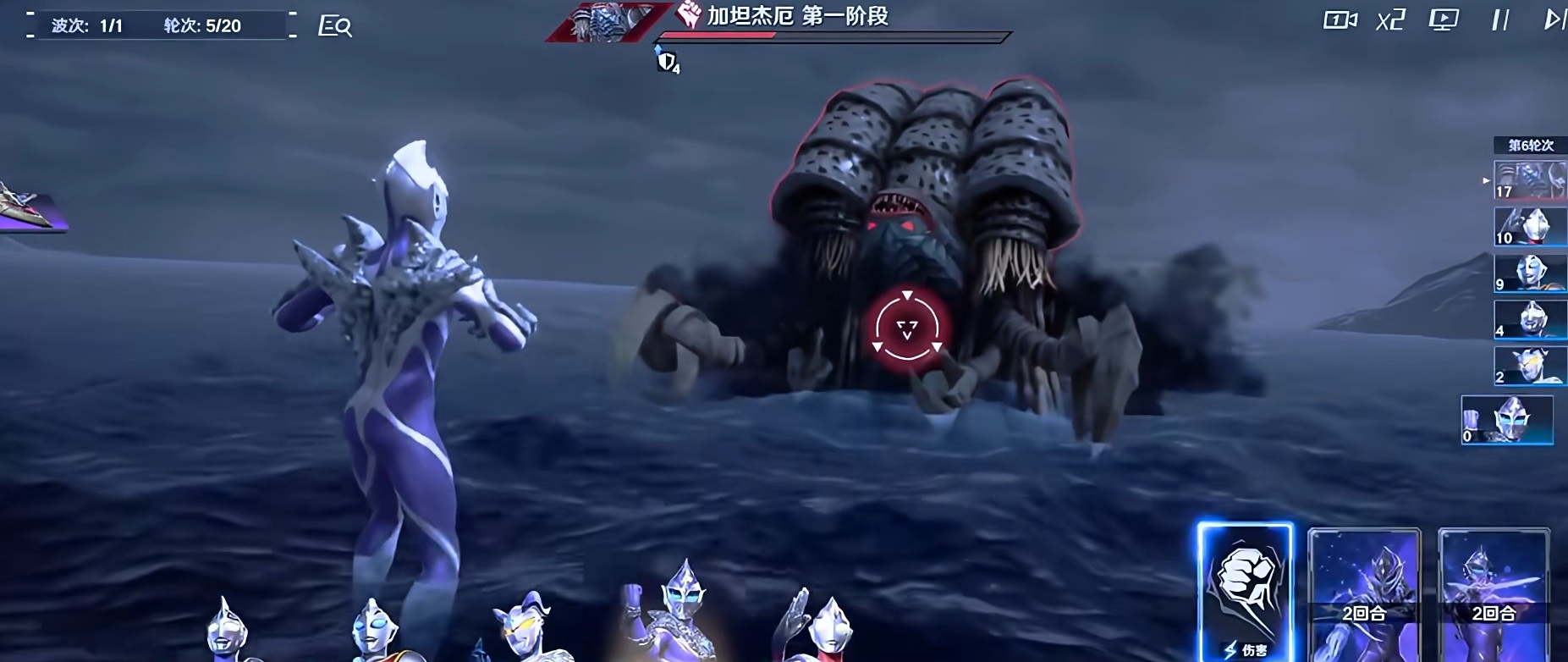 其实希特拉是一位非常适合打BOSS的角色,毕竟BOSS的血量都会比较高,用希特拉超强攻击力来进行消耗是非常合适的,以【加坦杰厄】为例子,玩家可以将希特拉作为副C进行排阵,队伍里的赛罗或是迪迦则可以当成主C来战斗,他的【急速飓风】能够直接打出暴击伤害。