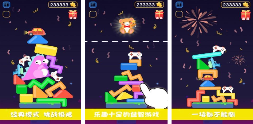 《情侣叠叠乐》是一款专为情侣打造的轻量级益智游戏,核心玩法围绕堆叠挑战展开。玩家需要轮流放置积木或其他可爱物件,保持结构稳定不倒塌。游戏提供简单、普通、困难三种难度模式,考验双方的耐心与配合度。操作直观,界面简洁,无需复杂学习即可快速进入状态。堆得越高得分越多,同时也更易失败,增加了紧张与乐趣并存的互动体验。