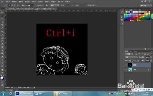 这时线条轮廓已经出来,接下来反向选择Ctrl+i