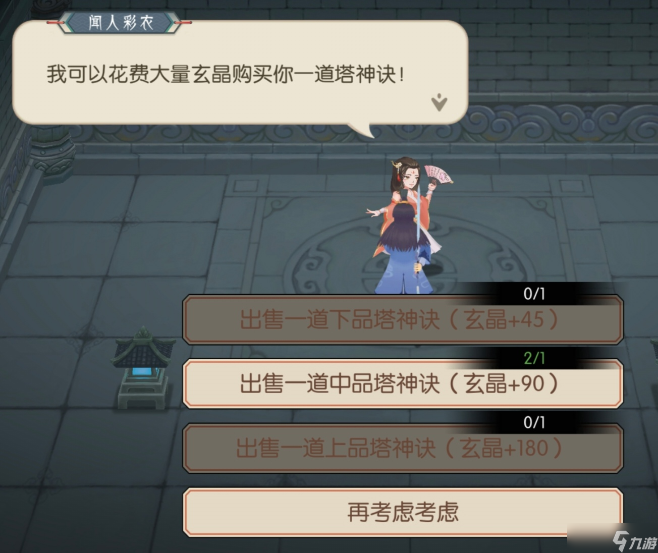【机缘宝箱】 60玄晶开箱子,可开三次,获得塔神诀。建议全开,最差下品也只亏30玄晶,中上品稳赚。