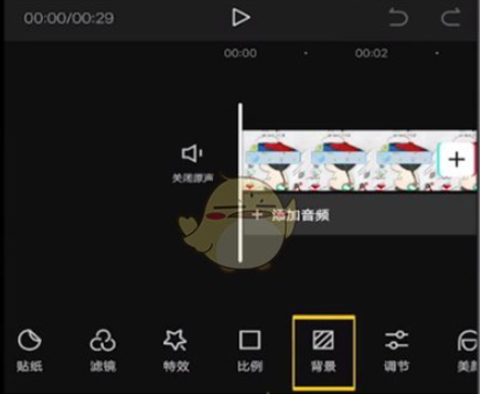 1、打开剪映,在编辑页面点击背景,点击画布颜色