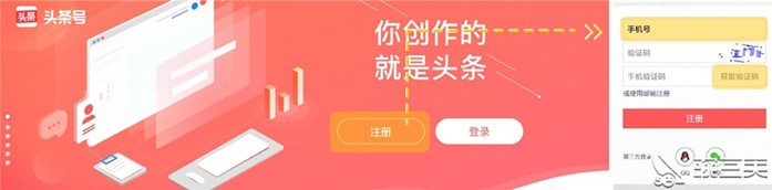 ① 展开头条号背景(https://mp.toutiao.com),点一下【申请注册】