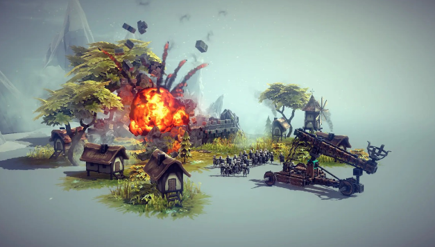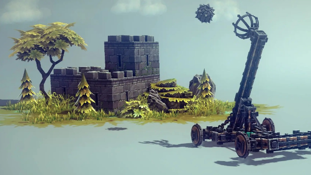 本作最大的亮点在于其无限制的建造体系。游戏中提供了丰富多样的基础组件,从微小的铰链到大型攻城器械部件,均可自由调用。无需依赖固定图纸,玩家可根据个人构想自由组合结构,无论是复刻中世纪战争机器,还是设计空中飞行载具,都能在游戏中实现。这种高自由度的搭建过程,配合真实的物理运算法则,使每一次尝试都充满未知与乐趣。整体美术采用复古中世纪视觉风格,搭配质朴的村庄与辽阔的荒野地貌,营造出浓厚的历史沉浸氛围。